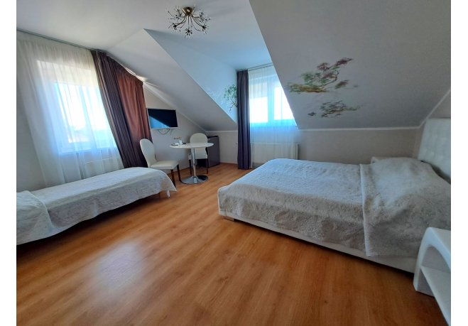 Pieejami dažāda iekārtojuma un izvietojuma trīsvietīgi numuri, lai atbilstu viesu dažādajām vēlmēm un vajadzībām. Piedāvājam mājīgus mansarda numurus ar logiem uz jūras pusi, nodrošinot elpu aizraujošu skatu un iespēju baudīt saulrietus. Tiem, kas dod priekšroku mierīgākai videi, pieejami numuri ar skatu uz pagalmu, kuriem ir ērts balkons – lieliska vieta rīta kafijas baudīšanai vai vakara atpūtai. Neatkarīgi no izvēlētā numura, viesiem tiek garantēts komforts un patīkama atmosfēra.